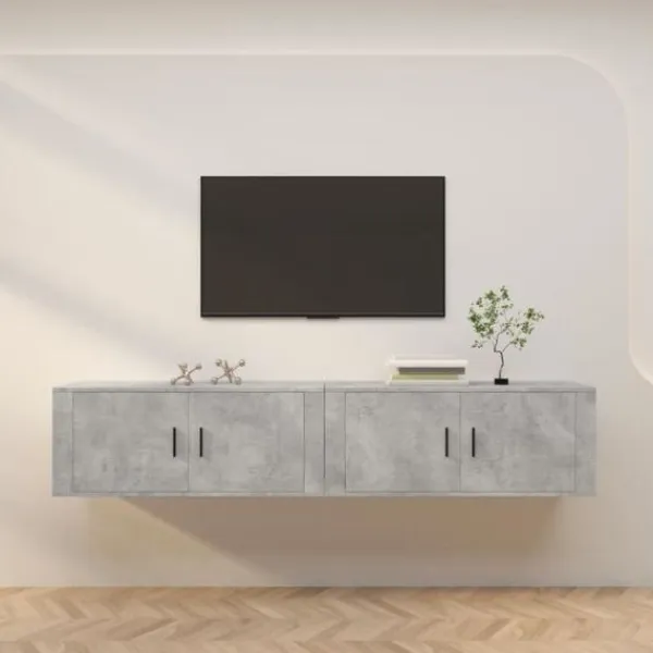 Dessa väggmonterade tv-bänkar har en elegant och klassisk design, vilket gör dem till ett dekorativt och praktiskt inslag i din inredning. Hållbart material: Det konstruerade träet är av exceptionell kvalitet med slät yta och är också starkt, stabilt och fuktbeständigt.Gott om lagringsutrymme: Tv-bänken har ett fack, med gott om lagringsutrymme för dig att organisera föremål som en mediaspelare, tidskrifter och andra.Väggmonterad funktion: Detta väggskåp tar ingen golvyta. Du kan enkelt hänga det på väggen.Stabil ovansida: Tv-möbelns ovansida är en bra plats att ställa saker som böcker och annan inredning.Praktiska dörrar: Håll dina väsentligheter fria från damm genom att gömma dem i denna medieenhet. Bra att känna till:För att göra monteringen så enkel som möjligt, levereras varje produkt med en bruksanvisning.Skruvar och väggplugg ingår inte. Vi rekommenderar att du använder skruvar och plugg som passar dina väggar. Om du är osöker, sök professionell hjälp. Läs och följ varje steg i anvisningarna.