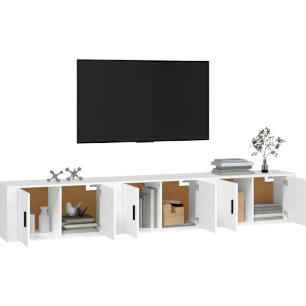 Dessa väggmonterade tv-bänkar har en elegant och klassisk design, vilket gör dem till ett dekorativt och praktiskt inslag i din inredning. Hållbart material: Det konstruerade träet är av exceptionell kvalitet med slät yta och är också starkt, stabilt och fuktbeständigt.Gott om lagringsutrymme: Tv-bänken har ett fack, med gott om lagringsutrymme för dig att organisera föremål som en mediaspelare, tidskrifter och andra.Väggmonterad funktion: Detta väggskåp tar ingen golvyta. Du kan enkelt hänga det på väggen.Stabil ovansida: Tv-möbelns ovansida är en bra plats att ställa saker som böcker och annan inredning.Praktiska dörrar: Håll dina väsentligheter fria från damm genom att gömma dem i denna medieenhet. Bra att känna till:För att göra monteringen så enkel som möjligt, levereras varje produkt med en bruksanvisning.Skruvar och väggplugg ingår inte. Vi rekommenderar att du använder skruvar och plugg som passar dina väggar. Om du är osöker, sök professionell hjälp. Läs och följ varje steg i anvisningarna.