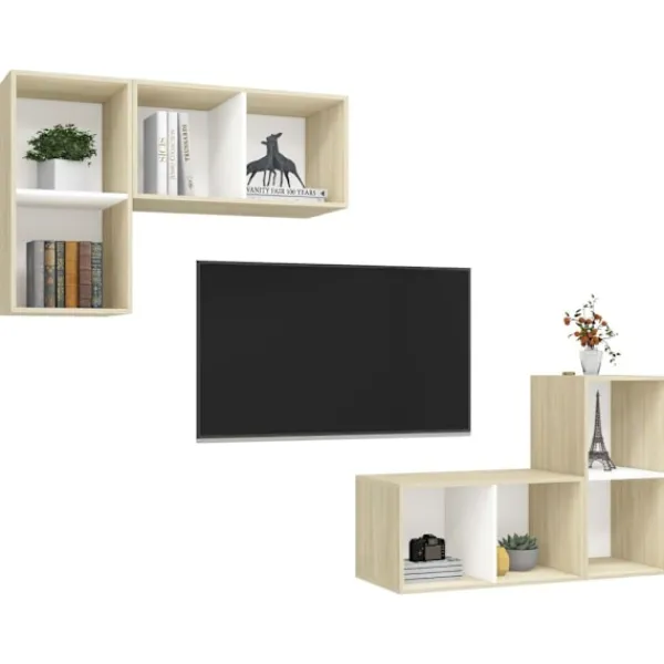 Dessa TV-skåp har gott om förvaringsutrymme för att organisera saker och blir definitivt en praktisk och iögonfallande detalj i ditt hem. Dessa TV-skåp kan hängas på väggen vertikalt eller horisontellt. Varje skåp har 2 utrymmen så att du kan visa upp eller förvara saker som du vill ha organiserade och inom räckhåll. Dessutom är skåpen enkla att rengöra med en fuktig trasa.