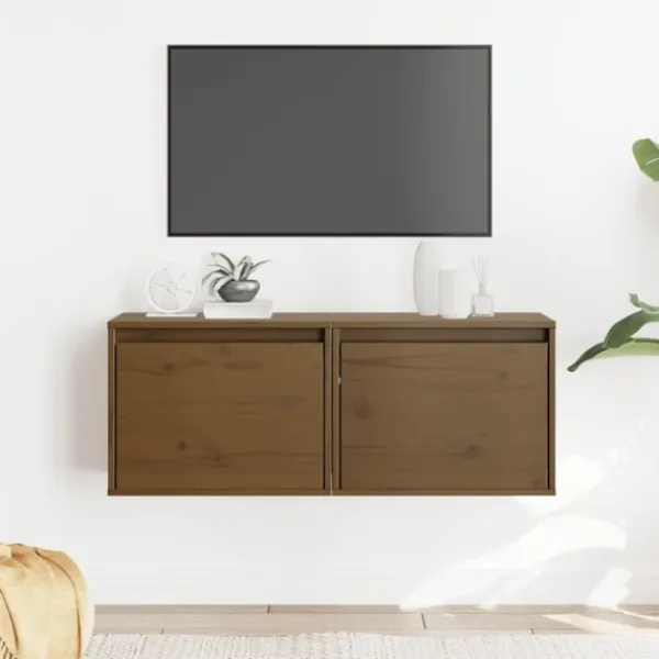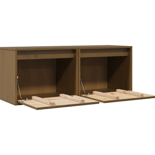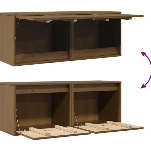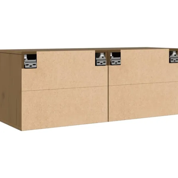 Dessa väggskåp blir en dekorativ och praktisk förlängning av din inredning. Du kan också använda de som TV-skåp Väggskåpet är tillverkat av massivt furuträ, vilket garanterar robusthet, hållbarhet och långvarig service. Väggenheten fungerar som den perfekta platsen att placera föremål som böcker, samlarobjekt, ornament och mer. Skåpet förvandlar en tom vägg till en designfunktion. Dessutom är det flytande skåpet lätt att rengöra med en fuktig trasa. Obs: Skruvar och plugg för insidan av väggen ingår ej. Sök och använd skruvar och plugg som är lämpliga för dina väggar. Om du är osäker, sök professionell rådgivning. Läs och följ varje steg i instruktionen noggrant.