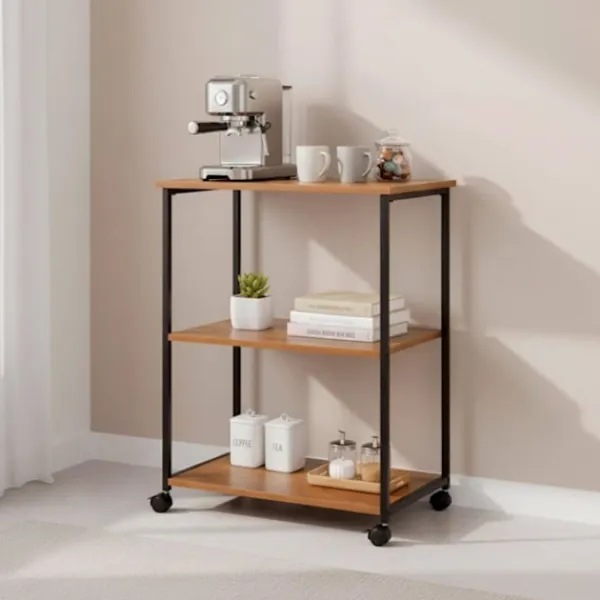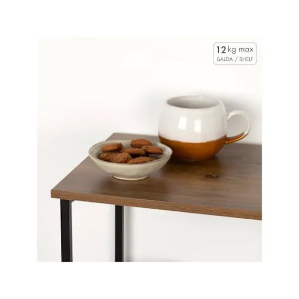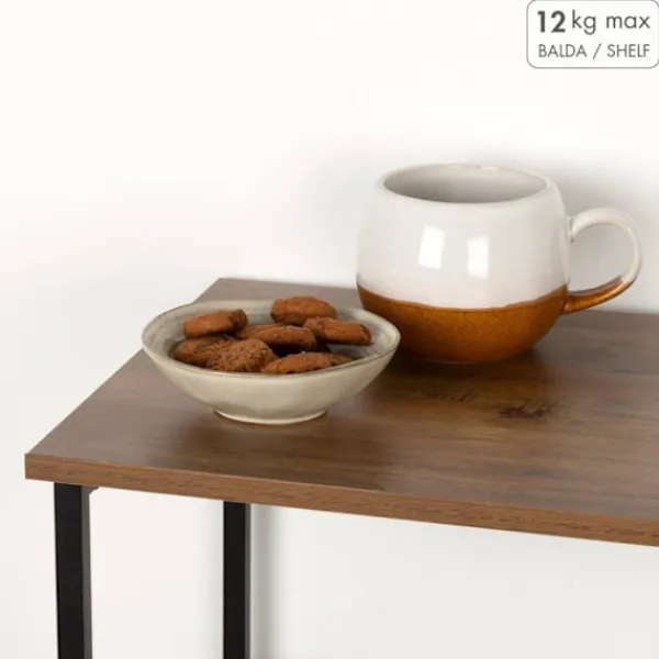 AKTIVE Max Home hyllan är en praktisk och estetisk förvaringslösning, perfekt för att optimera utrymmet i ditt hem. Med en svart metallstruktur och hyllor i naturträfinish ger den ett varmt industriellt inslag i ditt inre. Dess kompakta dimensioner på 48 x 30 x 62 cm och tre hyllplan erbjuder en stor förvaringskapacitet, perfekt för trånga utrymmen. Robust och lätt, kan den stödja upp till 12 kg, vilket gör den idealisk för att organisera böcker, badrumsartiklar, prydnadsföremål eller dekorativa element på ett säkert sätt. Mångsidig, den passar lätt in i olika rum som badrummet, vardagsrummet, sovrummet, kontoret eller entrén, och kan fungera som ett sidobord utan att kompromissa med stil eller användbarhet. Monteringen är enkel och intuitiv, tack vare tydliga instruktioner som inte kräver några komplicerade verktyg. Tillverkad av COLORBABY SL, är denna hylla designad för att hålla samtidigt som den erbjuder en effektiv och elegant förvaringslösning.