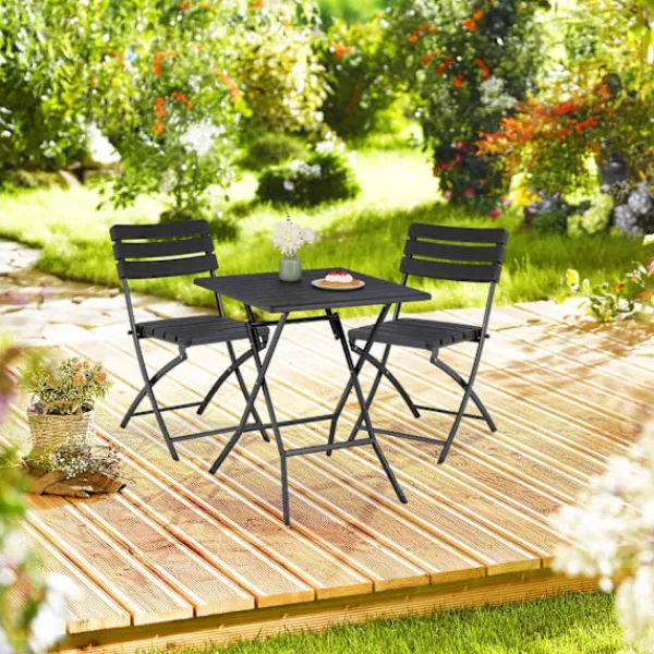 - Förbättra ditt utrymme med ett elegant bord och två bekväma stolar.