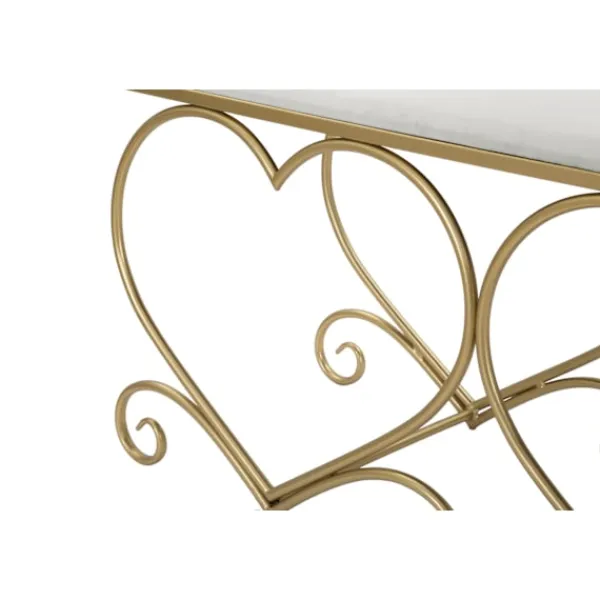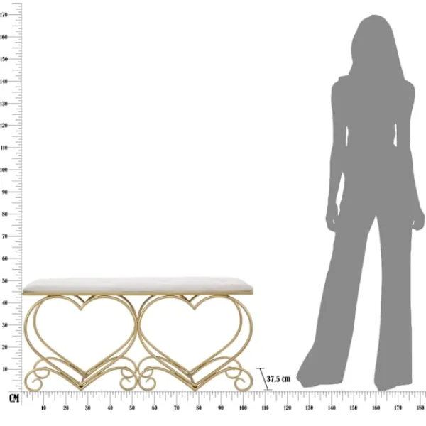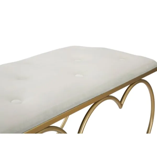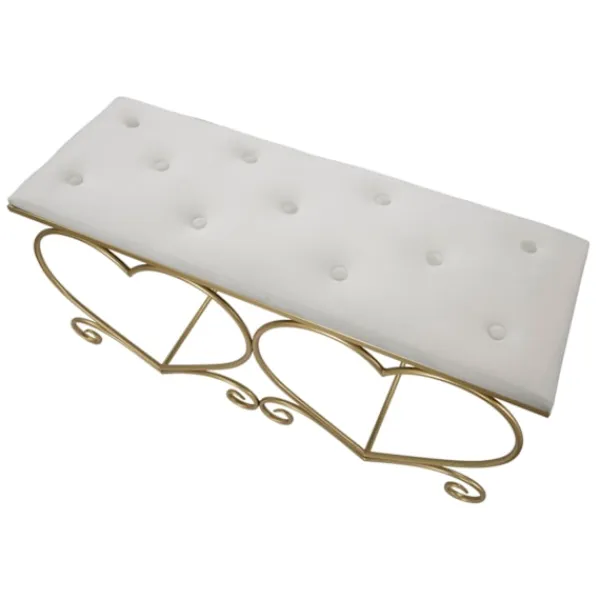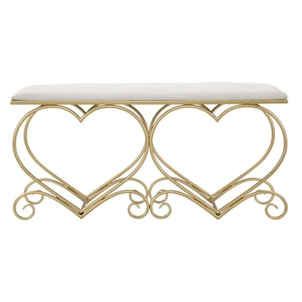 Denna eleganta bänk kombinerar gyllene metall med krämfärgad klädsel och erbjuder en hjärtformad design som ger glamour till vilket rum som helst.