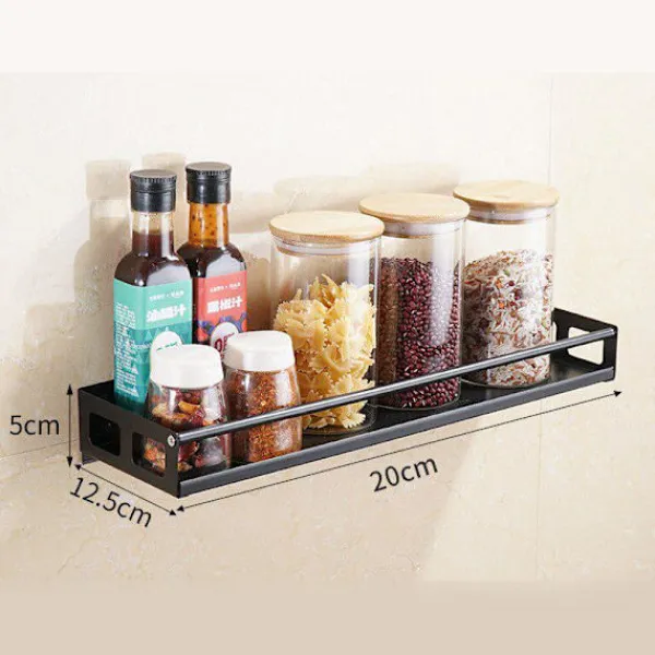 Denna eleganta svarta vägghylla är perfekt för att organisera och förvara dina saker i köket, badrummet eller sovrummet. Den är tillverkad av hållbart svartlackerat stål och kan enkelt monteras med hjälp av skruvar. Använd den för att hålla ordning på kryddor, skönhetsprodukter eller smycken. Med sina mått på 20 x 12,5 x 5 cm tar den inte upp mycket plats, men ger ändå gott om förvaringsutrymme. Lägg till en touch av stil och funktionalitet i ditt hem med denna svarta vägghylla.
