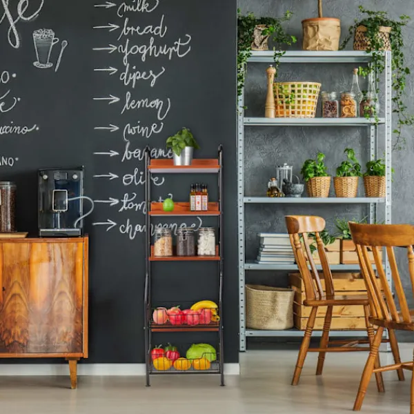 - Ordna köksredskap och torrmat på mångsidiga hyllor.