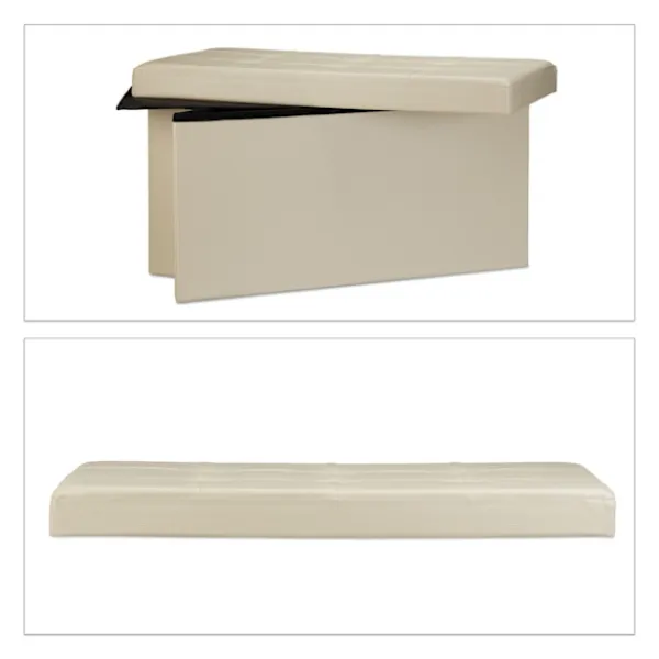 Den fällbara bänken erbjuder mångsidiga sittplatser och förvaring, perfekt för att optimera utrymmet. Förvara enkelt kuddar, filtar och mer i denna eleganta, hopfällbara sittlåda, utformad för stabilitet och stil.