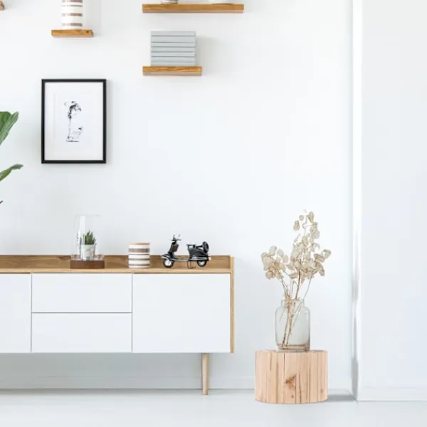 Den runda blompallen är inte bara en piedestal för dina växter, utan också en dekorativ möbel som tillför stil och elegans till ditt hem. Dess unika mosaikliknande design är skapad av sammanflätade grenar, vilket ger varje exemplar en unik karaktär. Den naturliga och varma färgtonen i träet skapar en harmonisk atmosfär och framhäver växternas skönhet. Oavsett om du placerar den i vardagsrummet, uterummet eller sovrummet, kommer denna blompall att bli ett samtalsämne bland dina gäster.