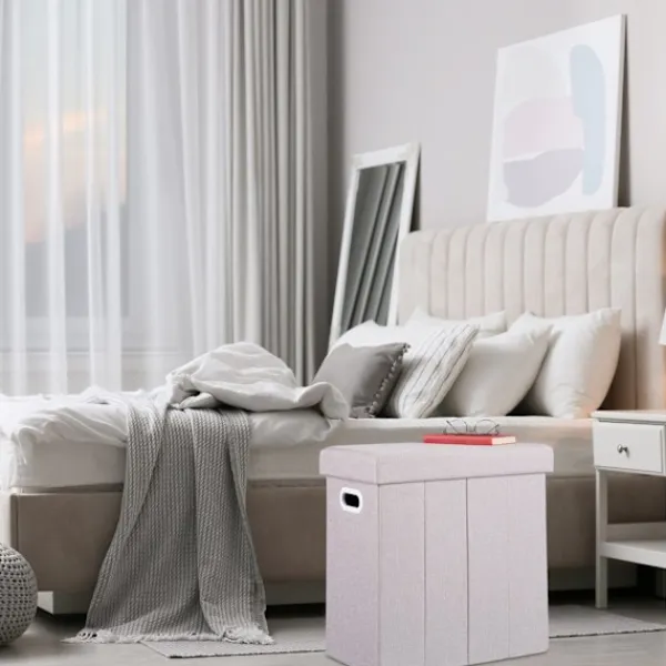 Den hopfällbara sidopallen med förvaring erbjuder mångsidig funktionalitet och komfort för alla rum. Dess rymliga fack håller ordning på de viktigaste sakerna, medan den vadderade sitsen garanterar en bekväm upplevelse.