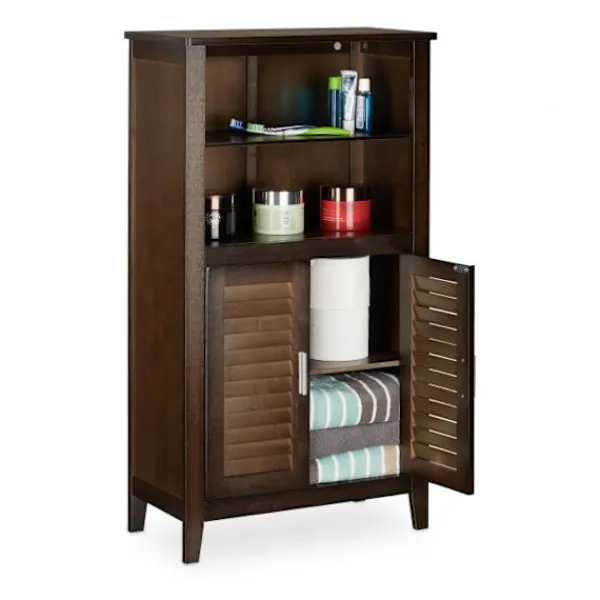 Det bruna badrumsskåpet i bambu förbättrar förvaringen med fyra rymliga hyllor, perfekta för att organisera handdukar, kosmetika och mer. Dess fuktbeständiga bambukonstruktion passar både badrum och kök.