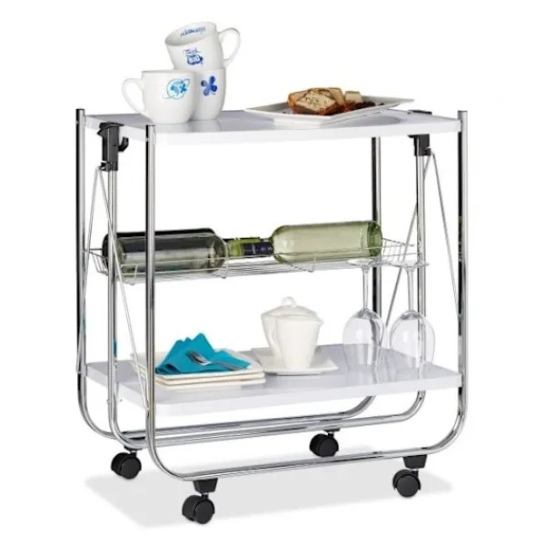 Vikbar serveringsvagn förbättrar hemmets bekvämlighet med sin eleganta metalldesign, perfekt för att transportera och servera mat, dryck och snacks utan ansträngning i alla rum.