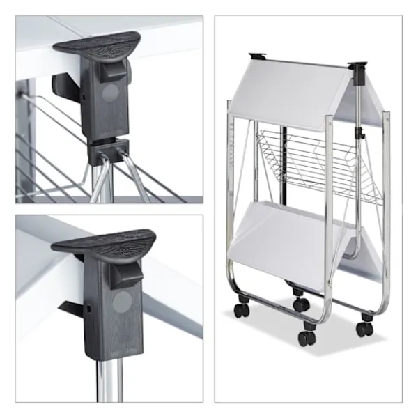 - Inkluderar fyra rörliga hjul för enkel manövrerbarhet i trånga utrymmen.
