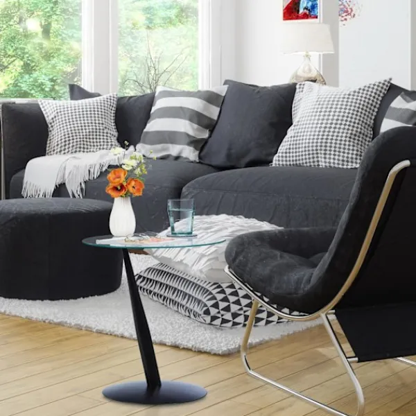 Förbättra ditt utrymme med ett modernt vardagsrumsbord med en rund glasskiva som erbjuder både stil och funktionalitet. Det här eleganta plagget är perfekt för enkel tillgång till nödvändigheter i alla rum.