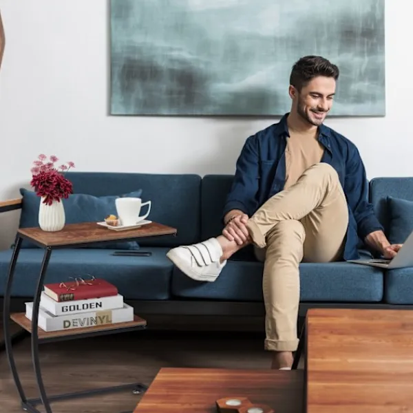 Det industriella smala sidobordet förhöjer små utrymmen med sin fyrkantiga reliefyta, perfekt för att hålla det nödvändigaste som drycker och telefoner inom räckhåll. Dess design smälter sömlöst in i vilken inredningsstil som helst.