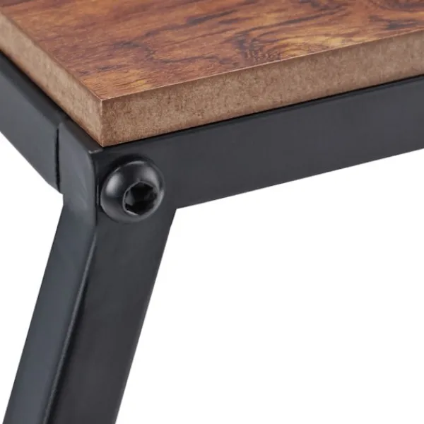 - Levererar en trendig industriell look med en topp i brun trälook och svart metallram.