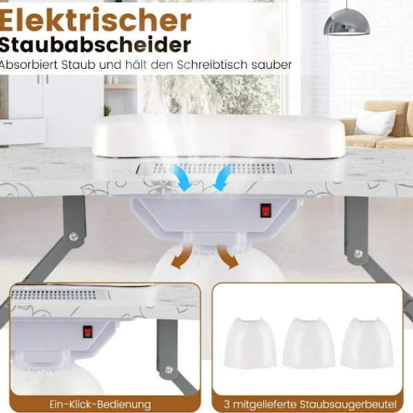 Den inbyggda elektriska dammuppsamlaren är en spelväxlare som säkerställer att din arbetsyta förblir ren och dammfri när du klipper eller filar naglar. Med en enkel operation med ett klick är den här funktionen användarvänlig och kommer med tre dammpåsar för enkel byte. Den flexibla LED-bordslampan är en annan höjdpunkt, som erbjuder tre färgtemperaturer och nio ljusstyrkanivåer för att passa alla miljöer. Justera vinkeln efter behov för att utföra invecklade nageldesigner med precision.