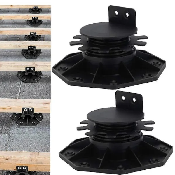 [Material]: Våra justerbara däckstödsfötter är tillverkade av högkvalitativt material, vilket är robust och hållbart för långvarig användning. De har hög motståndskraft, vilket ger en perfekt kombination av hållbarhet och egenskaper, och löser problemet med att traditionella betongdäckbaser är för tunga att installera. Det unika materialet förbättrar din installationsupplevelse. [Justerbar höjd]: Våra däckstödsfötter har 2 höjdjusteringshål, vilket gör att du enkelt kan justera höjden från 30 mm till 60 mm. Denna funktion är mycket praktisk för olika behov, som att jämna ut ojämnt underlag, höja ett däck till önskad höjd eller skapa ett förvaringsutrymme under däcket.