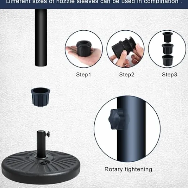 Produkten Inkluderar: 12st paraplyersättningsdelar, inklusive 2set (6st) paraplyhålring i 3 storlekar: 1.9 tum, 1.5 tum och 1.3 tum innerdiameter (kan monteras ihop), 4st 40mm/157tum m8 handknopp åtdragningsskruv och 2st Perfekt för att stabilisera och rikta in uteplatsparaplybaser. Produktstorlek: 1.9 tum, 1.5 tum och 1.3 tum ytterparaplyring, uppfyller behoven hos de flesta paraplystolpar, den sorterade storleken kommer att vara utmärkt för att dra åt paraplystolpen, kan skydda ditt paraply från repor och bucklor på paraplystolpen. Premiummaterial: Paraplybastillbehören är gjorda av högkvalitativ plast, robust och hållbar. Med bra extrusionsbeständighet, hög temperaturbeständighet och väderbeständighet, hållbar. Med bra fästprestanda är gängersättningsskruvarna gjorda av premiumplast och rostfritt stål, robusta och inte lätta att bryta. Lätt att installera: Välj 3 storlekar på paraplyringarna beroende på diametern på paraplystolparna, sätt in paraplystolpen i basen, dra sedan åt M8 Star-handratten och fixera paraplyet för att förhindra att det glider. Bred applikation: Dessa öljetter uppfyller de flesta standardstångdiametrar på marknaden; Klassisk svart färg kan matcha alla dina utemöbler och ge mer utrymme. Kan användas på uteplatsbord, strand, gård, trädgård, balkong, däck och pool.