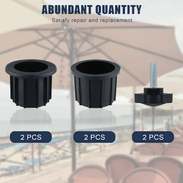 Premiummaterial: Parasollfotens tillbehör är gjorda av högkvalitativ plast, robust och hållbar. Med bra extrusionsbeständighet, hög temperaturbeständighet och väderbeständighet är de långvariga. Med bra fästprestanda är gängersättningsskruvar gjorda av premium svart plast och rostfritt stål, robusta och inte lätta att bryta.