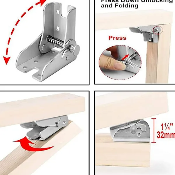 3. Dessa konsoler är lätta att fälla ihop och självlåsande för ökad säkerhet. De har en fjäderaktiverad ”tvångslåsning” som kan låsas i öppet läge för att säkerställa stabilitet. När du inte använder ett skrivbord eller en arbetsbänk, tryck bara på låset och fäll ner för mer utrymme.