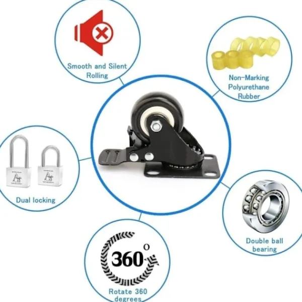 – Denna svängbara roulette är tillverkad av högkvalitativ polyuretan. Till skillnad från hjul av dålig kvalitet kommer dessa hjul inte att repa ditt golv.