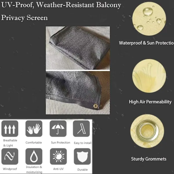 Högkvalitativa förstärkta kanter: Skärmen är tillverkad med 210g/m² med förstärkta kanter runtom, vilket gör balkongskärmen rak, fast, i form och inte lätt deformerad.