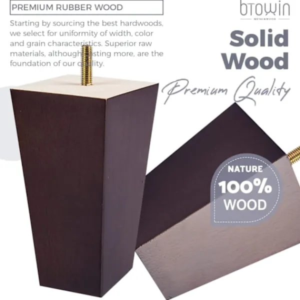 GARANTERAD KVALITET – Setet med 4 möbelben är välgjorda av massivt gummiträ och belagda med valnötsfinish, robusta, hållbara och glansiga.