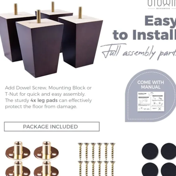 VARMA TIPS – För att installera dessa möbelben måste möbelns bas borras. Om den befintliga muttern är för 5/16′ bult, skruva bara i de nya benen. Annars måste den befintliga gamla hårdvaran tas bort.