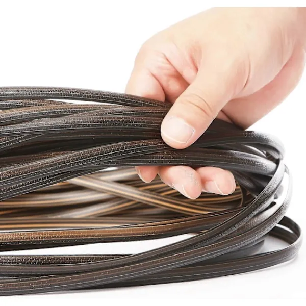 Färg: tvåtonad gradient mörkbrun med ljusbruna / orange ränder; Bredd 8,3 mm; Tjocklek 1,2 mm. Observera att färgen på vår plastrotting kanske inte är exakt densamma som den rottingmöbel du behöver reparera. Du kan matcha färgen på den rottingmöbel du behöver reparera antingen genom att spraymåla eller klippa ordentligt efter dina behov.
