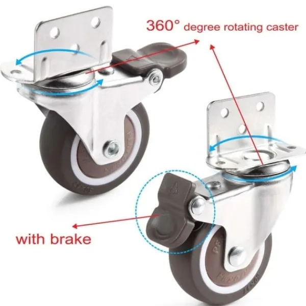 4x hjul – 25 mm för möbler Små svängbara hjul med broms och monteringsplatta och skruvar