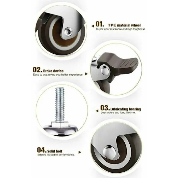- BRED ANVÄNDNING – Perfekt för DIY-projekt, industri, hem, skolor, butiker, garage, vagnar och sjukhus, hjul som passar perfekt för små utrustningar och små möbelutrymmen inklusive soffbord, växter, hyllor, skohyllor, papperskorgar, kundvagnar, arbetsbänkar, förvaring under sängen