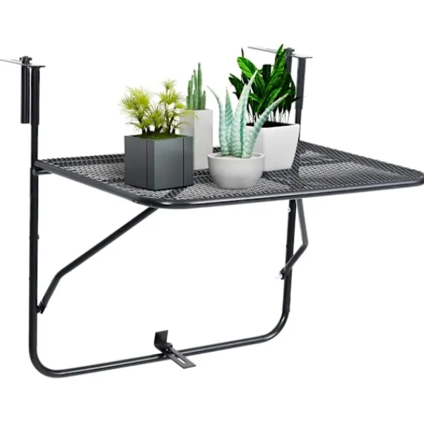 Detta balkongbord kommer att vara ett trevligt tillskott till din balkong. Det kan användas som ett soffbord för att placera drycker på eller som ett praktiskt arbetsbord för olika saker. Sidobordet är tillverkat av robust stål och är väderbeständigt och stabilt. Meshdesignen och den svarta e-beläggningen skapar en industriell charm på balkongen. Bordet är också lätt att fälla ihop för att spara utrymme när det inte används.
