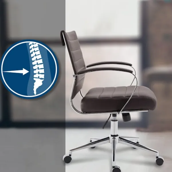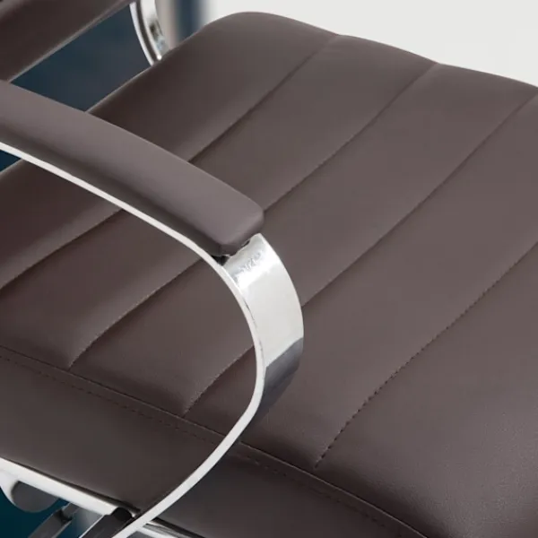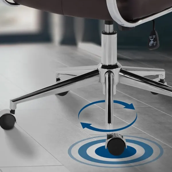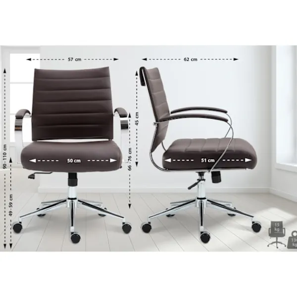 Kontorsstol. Kontorsstolen kombinerar ergonomisk design med individuell komfort och en snygg look. Denna stol är det perfekta tillskottet till varje kontor där hälsa och välbefinnande på arbetsplatsen är av största vikt. Det quiltade ryggstödet och den ergonomiska formen stöder din naturliga sittposition. Med höjden justerbar säte, den justerbara lutningsfunktionen och de 360 ° roterande flexibla hjulen, anpassar stolen flexibelt efter dina behov. Kromramen erbjuder stabilitet och en lång livslängd. Tack vare den breda platsen erbjuder stolen också optimal sittkomfort på långa arbetsdagar .. Detaljer:. Total höjd: 90 – 100 cm. Total bredd: 57 cm. Totalt djup: 62 cm. Sitshöjd: 49 – 59 cm. Sitsyta (B x D): 50 x 51 cm. Tjocklek Sittkudde: 8 cm. Höjd ryggstöd: 45 cm. Breddens rygg: 44 cm. Höjd armstöd (från golvet): 66 – 76 cm. Max. Lastkapacitet: 130 kg. Vikt: 15 kg. Materialkomposition: 100% äkta läder (nötkreaturläder) / 100% polyuretan (konstgjort läder) / 100% polyester (tyg). Session:. Klädsel: Riktigt läder (nötkött läder) / konstgjort läder / tyg. Ryggstöd för bättre sittkomfort. Sitter bekvämt även efter flera timmar. Chassi:. Material: Metall i kromutseende. Med stabil metall svivel. Inklusive 5 flexibla hjul. Underhållsinstruktioner:. Ta lätt förorening med fuktig bomullsduk. Ytor bara vakuum med lämplig sug. För rengöring rekommenderar vi en bomullstyg fuktad med ljummet vatten