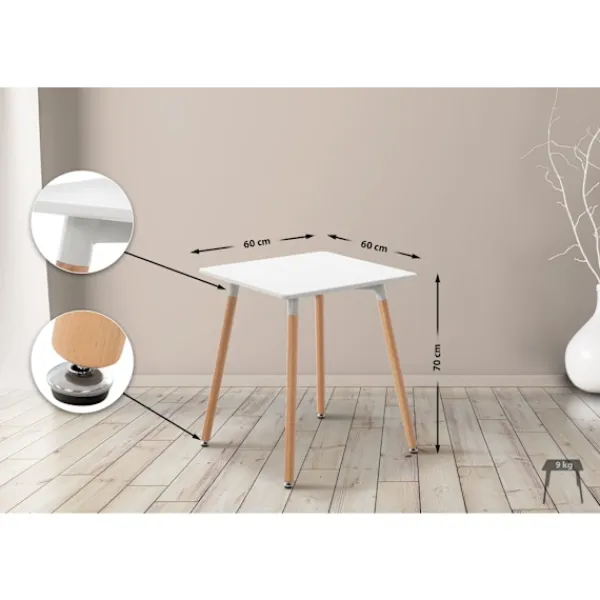 Köksbordsmodell. Köksbordet är funktionellt och mångsidigt. Bordstoppen är gjord av robust MDF och vilar på en robust ram av bokved. Ramen har justerbara golvslioner som säkerställer stabilitet på ojämna golv. Tabellen finns i två storlekar (60×60 cm och 80×80 cm), vilket gör det till ett flexibelt val för varje kök eller matsal. Att montera bordet är enkelt. Den levereras med en tydlig manual som förklarar strukturen steg för steg. På så sätt kan du bygga och använda ditt nya bord snabbt och enkelt … Om storlekar:. 60 cm. Total höjd: 70 cm. Total bredd: 60 cm. Totalt djup: 60 cm. Vikt: 9 kg. 80 cm. Total höjd: 75 cm. Total bredd: 80 cm. Totalt djup: 80 cm. Vikt: 14 kg