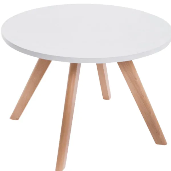 Snyggt bord för moderna accenter. Det snygga bordet säkerställer ett modernt utseende överallt du vill, tack vare den kompakta storleken, passar den här tabellen överallt. Den matta vita runda bordsskivan bildar en fin kontrast med träbenen. Golvskyddarna förhindrar repor på golvet. Skaffa detta vackra bord i huset!. Ca. mått:. Tablettdiameter: 60 cm. Tabellhöjd: 40 cm. Avstånd mellan bordsben: 37 cm. Tabletttjocklek: 2 cm