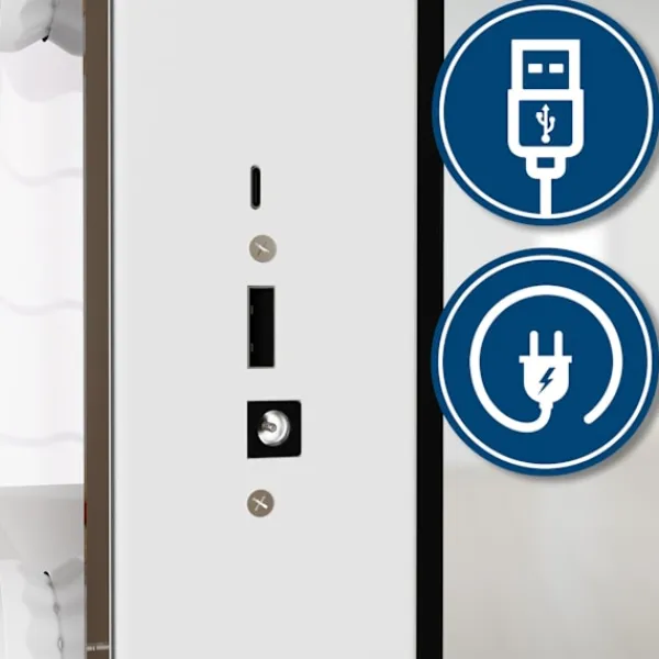Praktiskt: Make-up-tabellen är utrustad med USB-portar (USB-typ A och USB-typ C) för laddning av smartphones eller andra enheter.