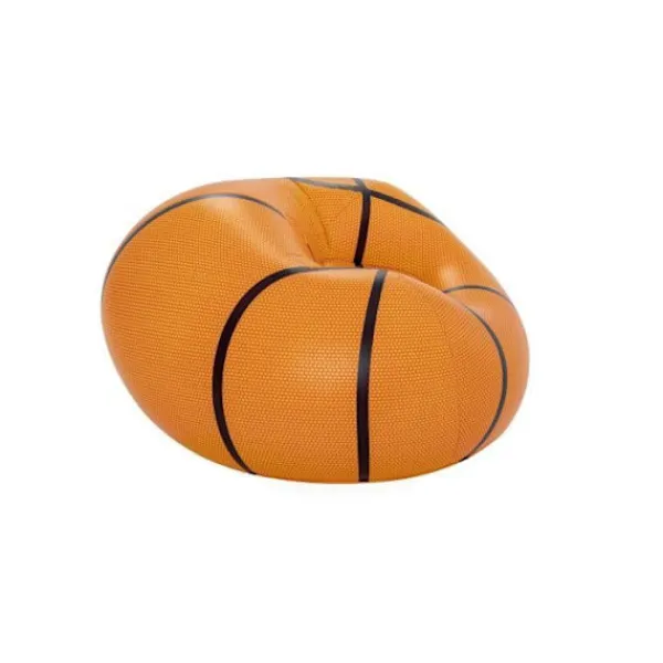 Denna uppblåsbara stol med basketbolldesign är perfekt för barn. Tillverkad i hållbar PVC, erbjuder den komfort och motståndskraft. Med måtten 114x112x66 cm passar den både inomhus och utomhus. Perfekt för att vila eller leka, den klarar upp till 75 kg och rekommenderas för barn över 6 år.