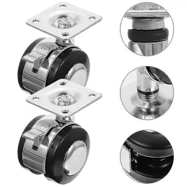 Funktion-Färg: Svart – Material: zinklegering – Den är lämplig för golv av lövträ, kakel eller matta. – Material av hög kvalitet, starkt och hållbart, slitstarkt, bra muteffekt. – Stabil installation, inte lätt att falla, stabil och pålitlig att använda.- Bekväm att använda, även om du inte har expertisen.- Byt ut det gamla eller trasiga rouletthjulet mot ett nytt.