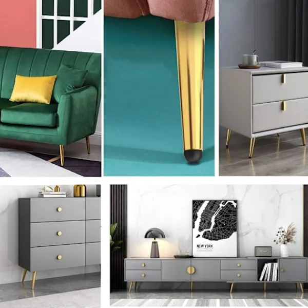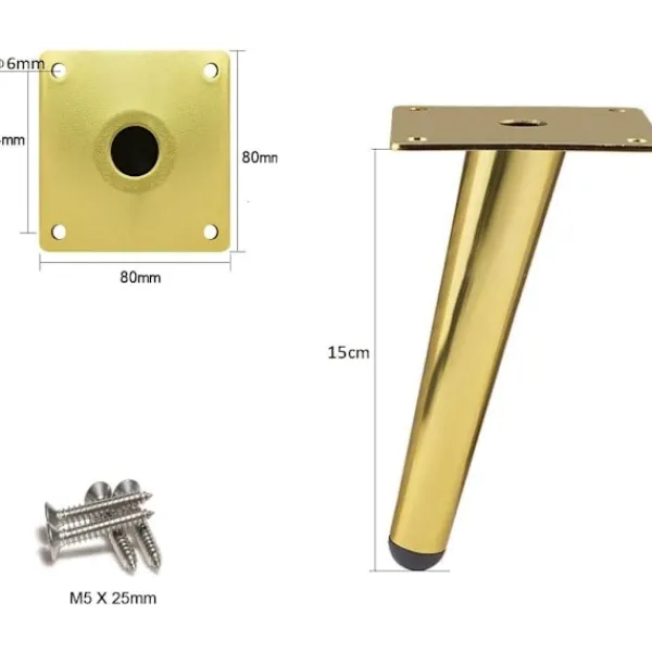 4 st sneda bordsben 15 cm metallskåpsben, konformade möbelben, 201 rostfritt stål, guld, höga, halkfria tysta baser för soffor, bord och andra möbler