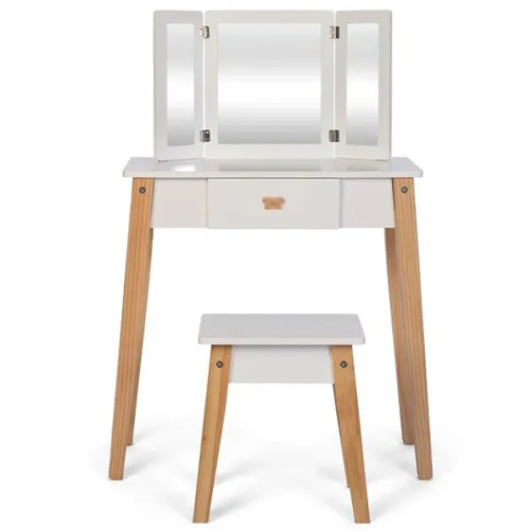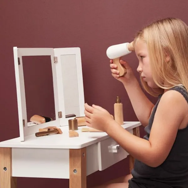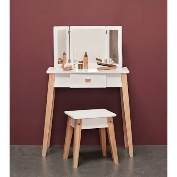Detta vackra sminkbord i trä från Astrup är perfekt för små handfat. Spegeln består av tre delar som kan justeras med gångjärn, så att ansiktet kan ses från vilken vinkel som helst. Detta bord har förutom en spegel en låda med plats för småsaker och tillbehör. För ökad säkerhet är spegeln gjord av.