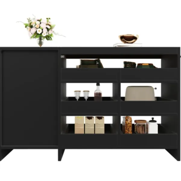 Multifunktionellt förvaringsrum: Utrustad med sex lådor som erbjuder gott om förvaringsutrymme. Hela förvaringsrummet är generöst tilltaget. Oavsett om du har stora köksmaskiner eller små flaskor och glas, hittar du en lämplig plats för att rymma dem. Detta tar hänsyn till familjens olika förvaringsbehov och undviker rörig stapling av föremål.