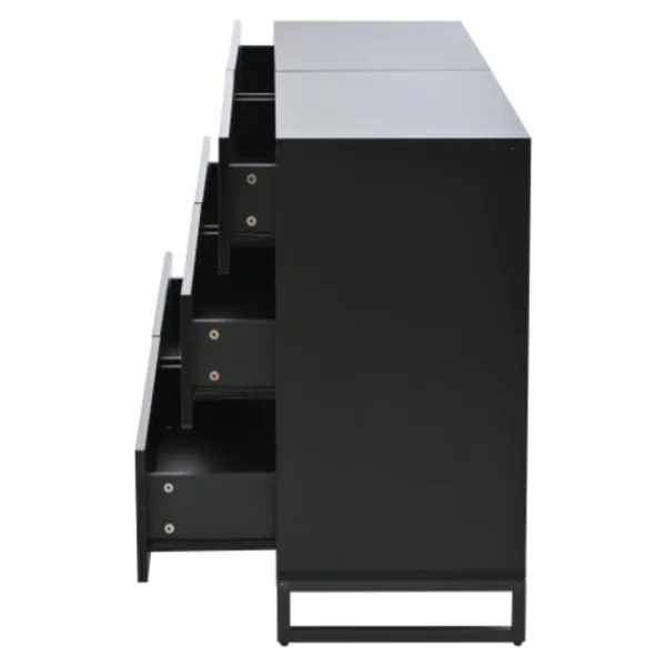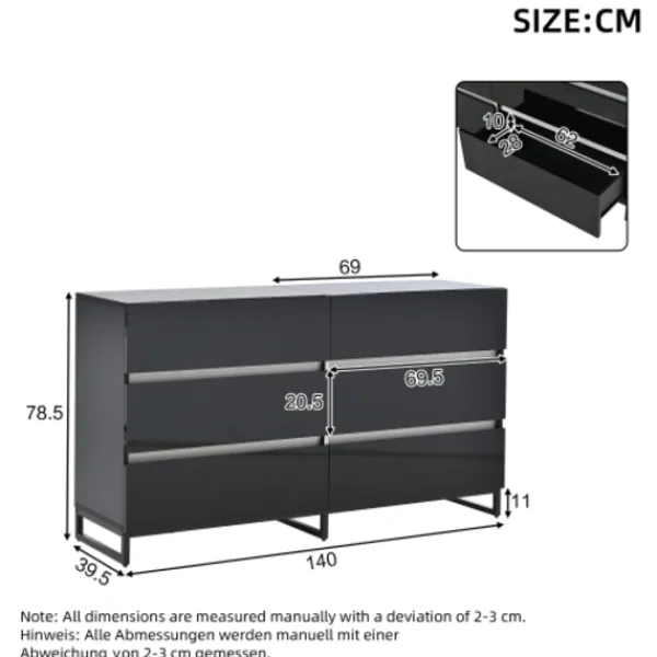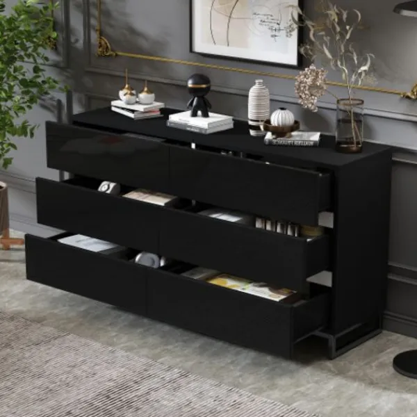 Kraftfull förvaringsfunktion: Utrustad med sex lådor erbjuder detta sideboard gott om förvaringsutrymme. Oavsett om det är vardagsrumsartiklar, vardagsföremål eller diverse saker kan allt organiseras och förvaras för att hålla ditt vardagsrum städat och organiserat.
