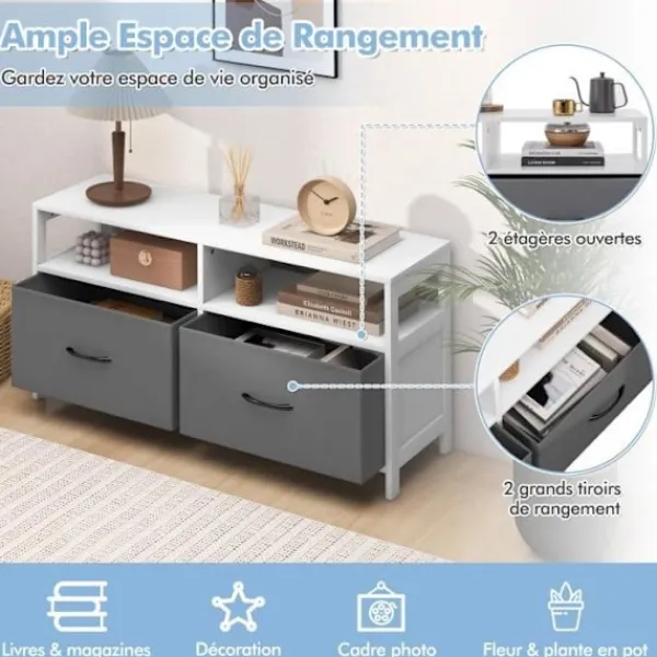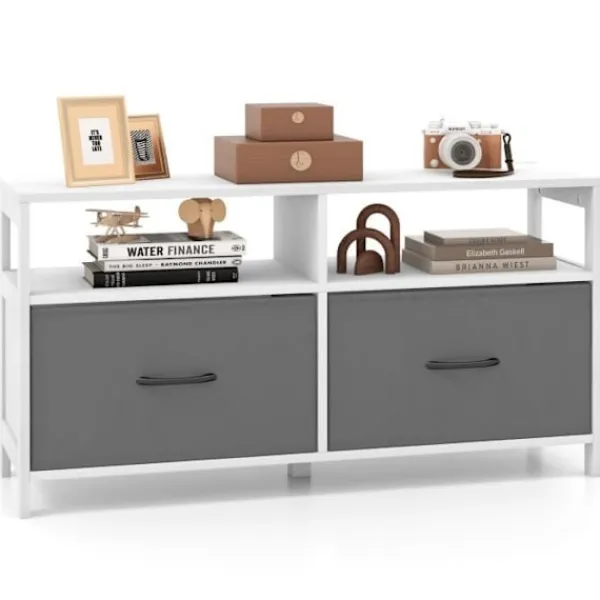 Denna tyglåda med två lådor är perfekt för att förvara och organisera dina tillhörigheter. Tillverkad av högkvalitativt trä, det är hållbart och stabilt. Lådorna är praktiska och fällbara och de halkfria kuddarna ger stabilitet och skyddar golvet. Den kan också användas som TV-ställ för tv-apparater upp till 45 tum. Lätt att installera och rengöra.