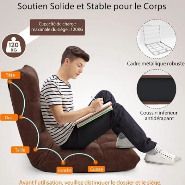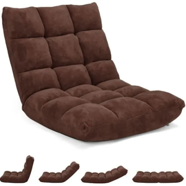Denna konvertibel fåtölj till en slapp säng är idealisk för små lägenheter. **INGEN MONTERING KRÄVS: omedelbar användning möjlig!** Den har 14 justerbara lutningspositioner från 90° till 180° för att uppfylla alla dina behov. **Oavsett om det är för att meditera, läsa eller titta på TV, spela spel, är golvfåtöljen alltid en bra följeslagare.** Ytan av korallull och den mycket elastiska skummet erbjuder komfort och hållbarhet. **Mått (Säng): 57 x 105 x 15 cm (L x B x H).** Denna justerbara golvfåtölj kräver ingen montering.