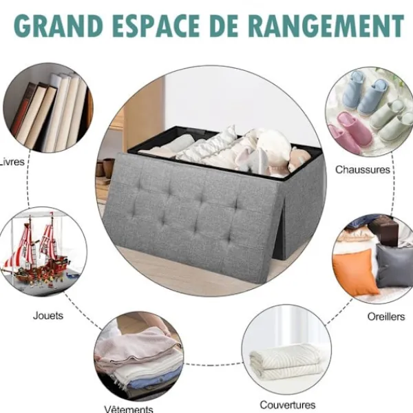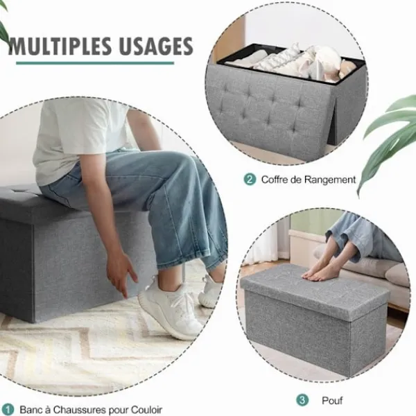 Allier elegans och praktiskhet, vår vikbara förvaringspuff är det perfekta valet! Strukturen är av högkvalitativ MDF, vilket garanterar en hög belastningskapacitet utan deformation. Dessutom erbjuder det mjuka tygöverdraget och den tjocka stoppade sitsen en bekväm sittplats. Det stora inre förvaringsutrymmet, utrustat med en hängande låda, gör det möjligt att förvara kläder, filtar, skor och andra vardagsföremål. Utrustad med en detaljerad bruksanvisning monteras denna sängbänk snabbt och kan enkelt vikas ihop när den inte används, för minimal platsanvändning.