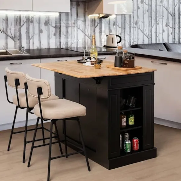 Bli först med att recensera ”COSTWAY Köksö>Köksvagn Central Kitchen Island – Vikbara bänkskivor, lådor, 2 dörrar, justerbar hylla – Svart” Avbryt svar
