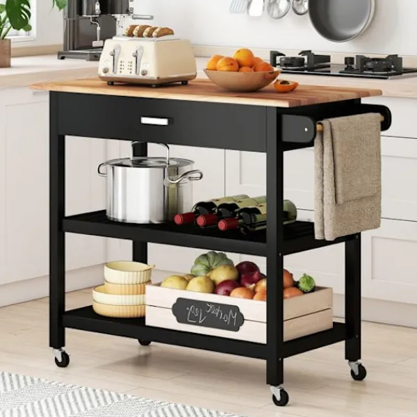 >Arbetsyta i gummiträ som ger en rustik stil