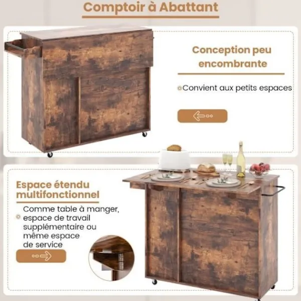 4 svängbara hjul (2 låsbara) för enkel förflyttning och fastsättning >Vinlådan kan rymma upp till 7 flaskor vin >Praktisk handdukshållare/tryckhandtag för olika användningar >Köksvagn med vikbart bänk som ger extra utrymme för matberedning >Justerbar hylla med 3 positioner för praktisk placering av föremål i olika storlekar >Material: spånskiva, metall >Totala dimensioner (fullt utvikt): 121x68x88 cm >Avstånd mellan positionerna för de justerbara hyllorna: 6,5 cm