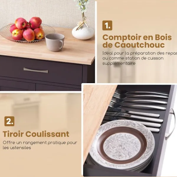 >Bänkskivan i gummiträ ger gott om förvaringsutrymme för matlagning