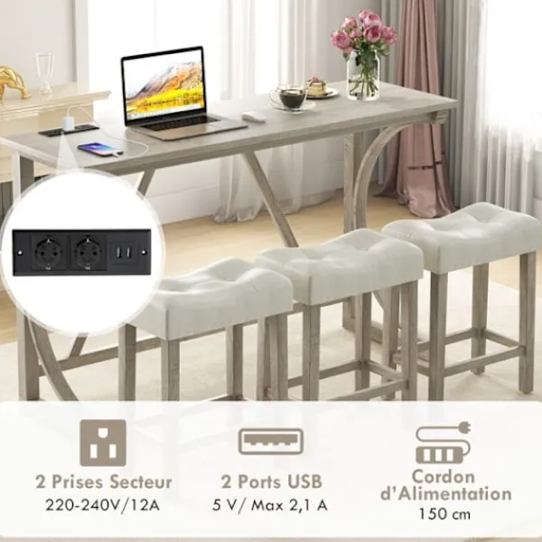 Bli först med att recensera ”COSTWAY Matgrupper>4-delars Barbord Set med Strömuttag – 3 Polstrade Pallar – Bänkhöjd – För 3 Personer” Avbryt svar