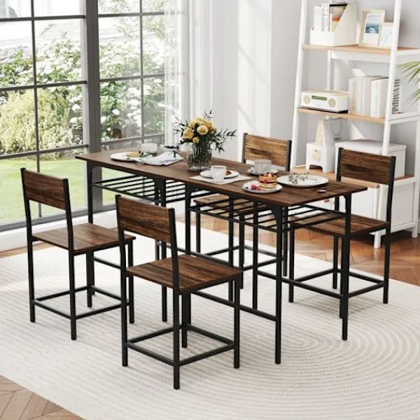 Bli först med att recensera ”COSTWAY Matgrupper>Ensemble Bord och Stolar för Matplats för 2 Personer – Metallram, Brun Hylla” Avbryt svar